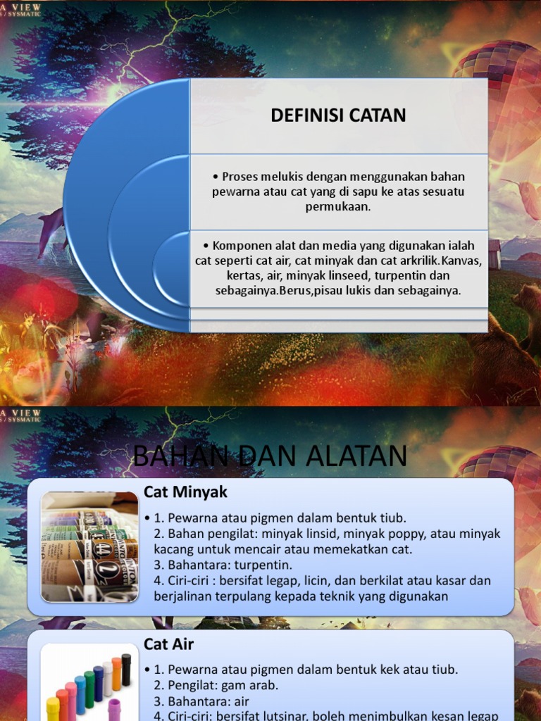 Related : Cat Minyak Dan Cat Air - Cat minyak merupakan media basah bukan berasaskan air yang paling popular di kalangan artis tanah air dan pelajar2 seni..